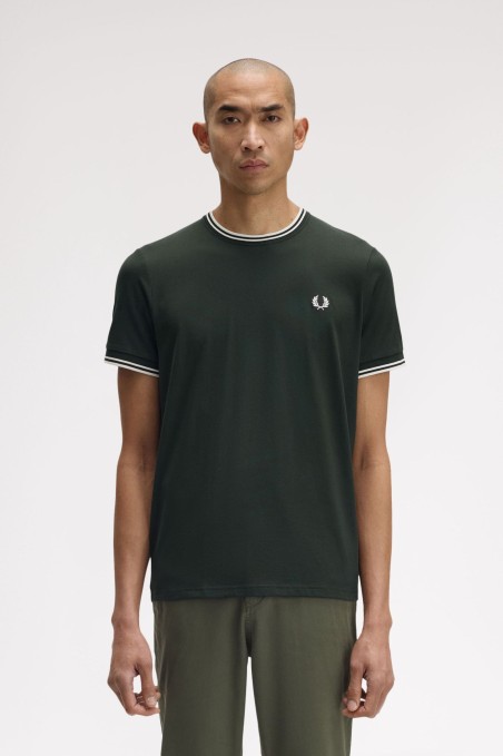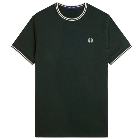 Fred Perry M1588 Twin Tipped Tee Night Green/Snow White