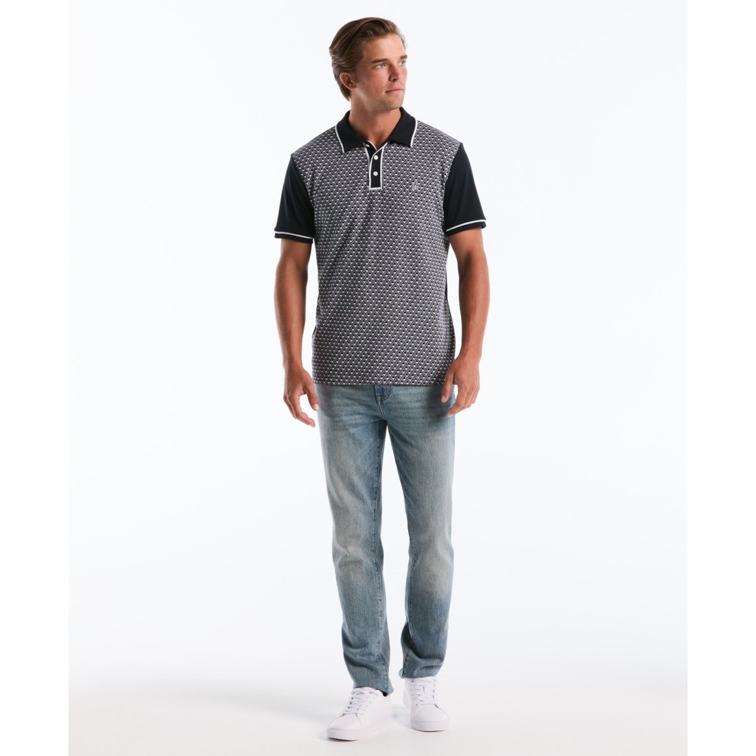 Original Penguin Diamond Jacquard Front Interlock Polo Dark Sapphire